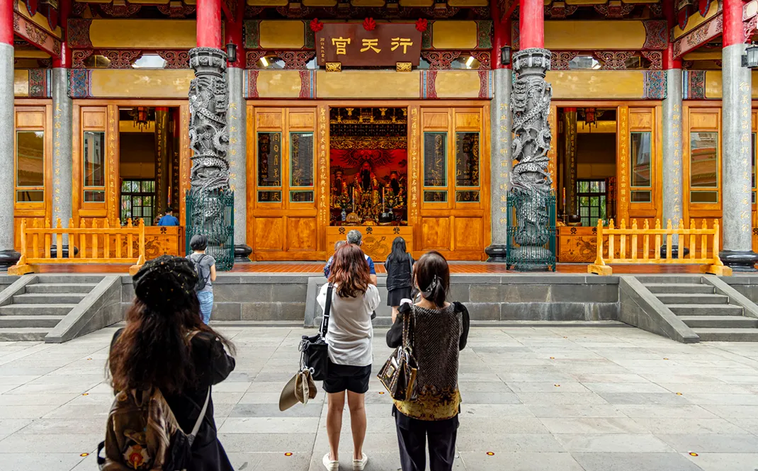 行天宮位於中山區民權東路和松江路口,是北臺灣參訪香客最多的廟宇