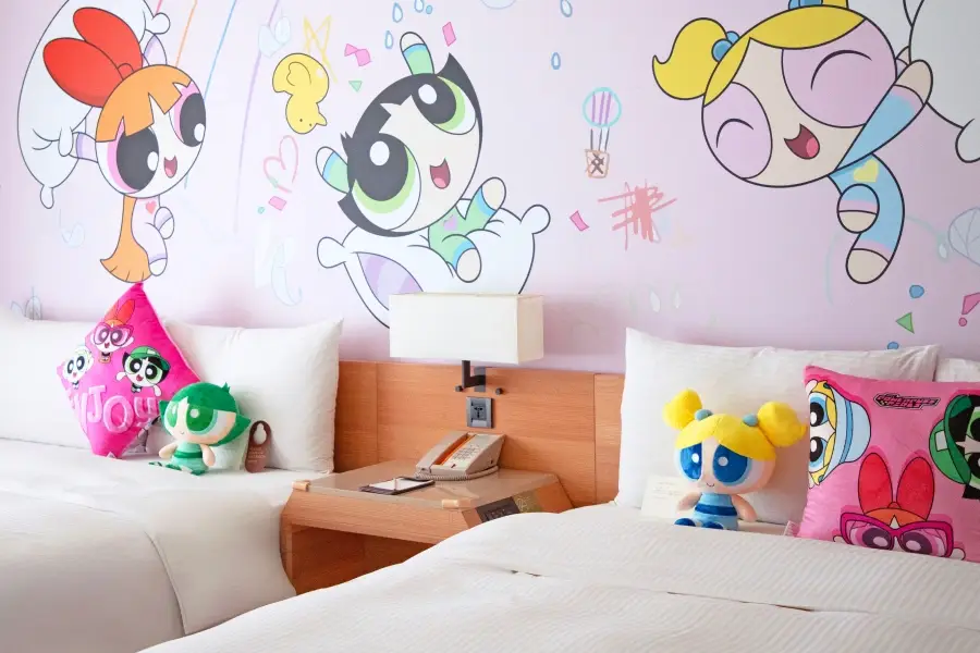 54間客房共18款豐富情境壁貼,讓卡通明星陪伴你歡樂入住