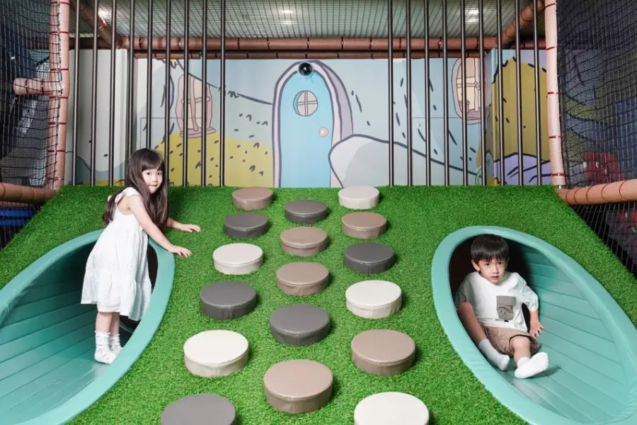以《熊熊遇見你》為主題,融合主角們的森林居住情境,牆面裝飾呈現卡通場景與角色。園區設置五款大型遊具,包括樹洞山丘、樹木溜滑梯等,打造出獨一無二的遊樂氛圍。