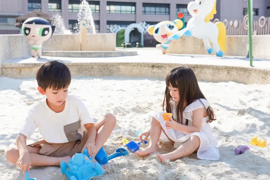 活潑可愛的飛天小女警花花、泡泡和毛毛,陪伴小朋友們一起歡樂玩沙。