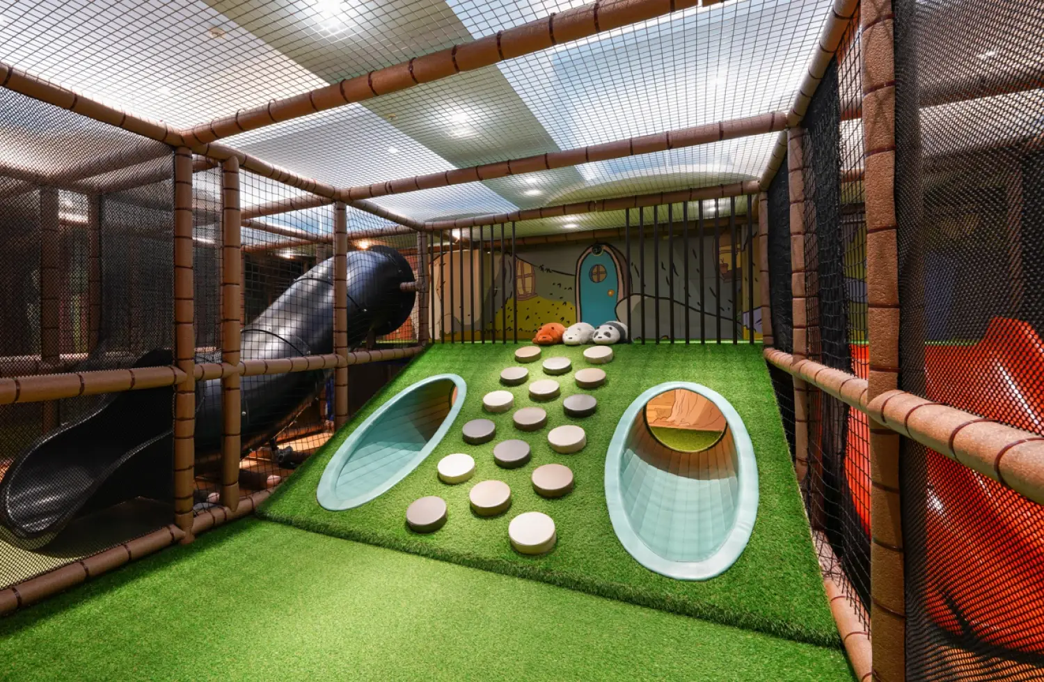 使用規範全新面貌熊熊遇見你主題室內遊樂設施「森林遊戲屋」,以熊熊遇見你為主題融合主角們居住的森林情境,牆面以熊熊遇見你卡通場景及卡通人物做呈現,並導入5款大型遊具,分別有樹洞山丘、樹木溜滑梯等設施,打造出獨一無二的遊樂氛圍。