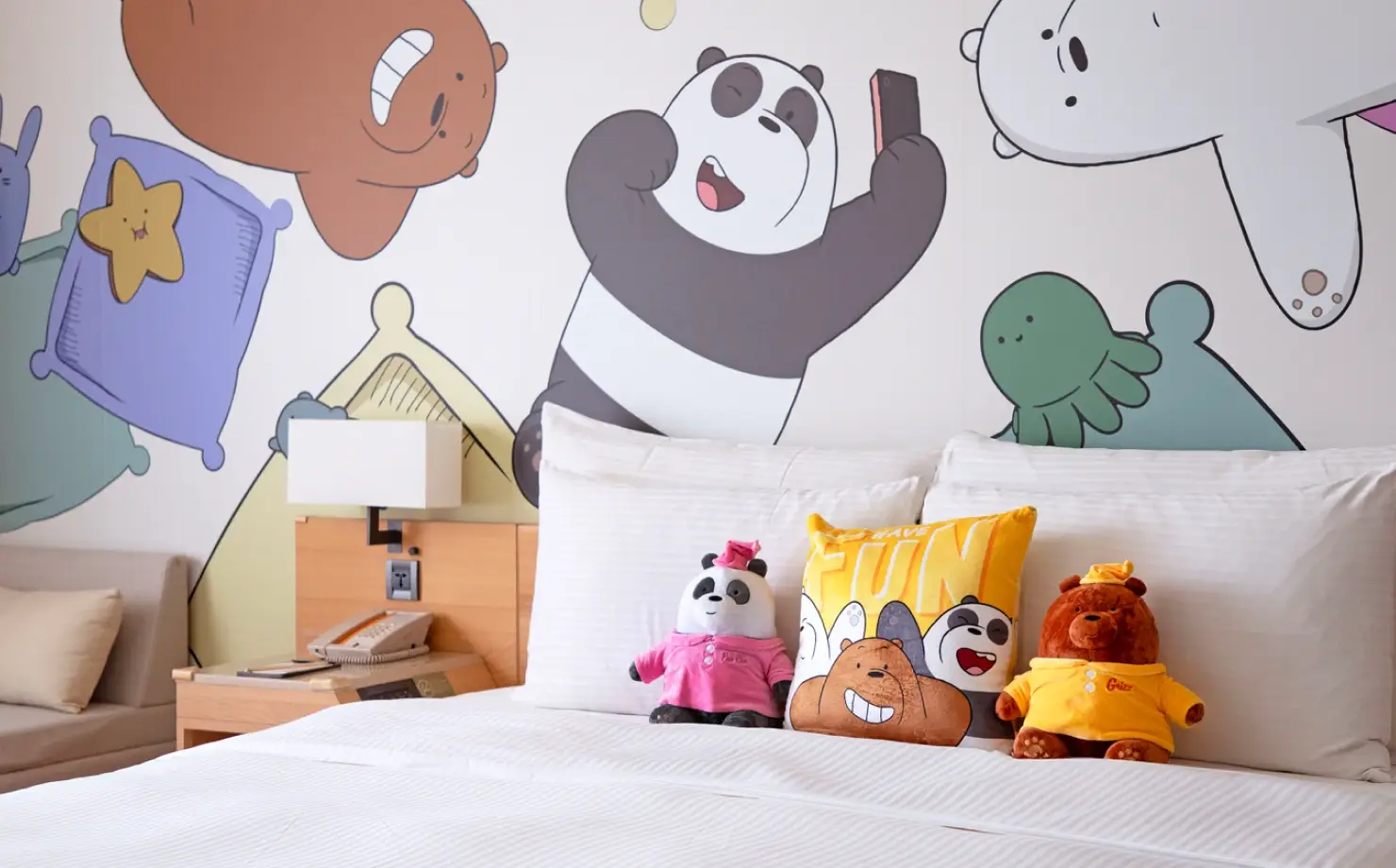 附有極簡卡通頻道主題客房內結合了探險活寶、飛天小女警與熊熊遇見你三部卡通共18款豐富的情境壁貼,搭配舒適客房內的絕佳採光和充足的空間設計,以及優質睡床、加厚窗簾與完整隔音,為您營造高品質又愉悅的住宿體驗