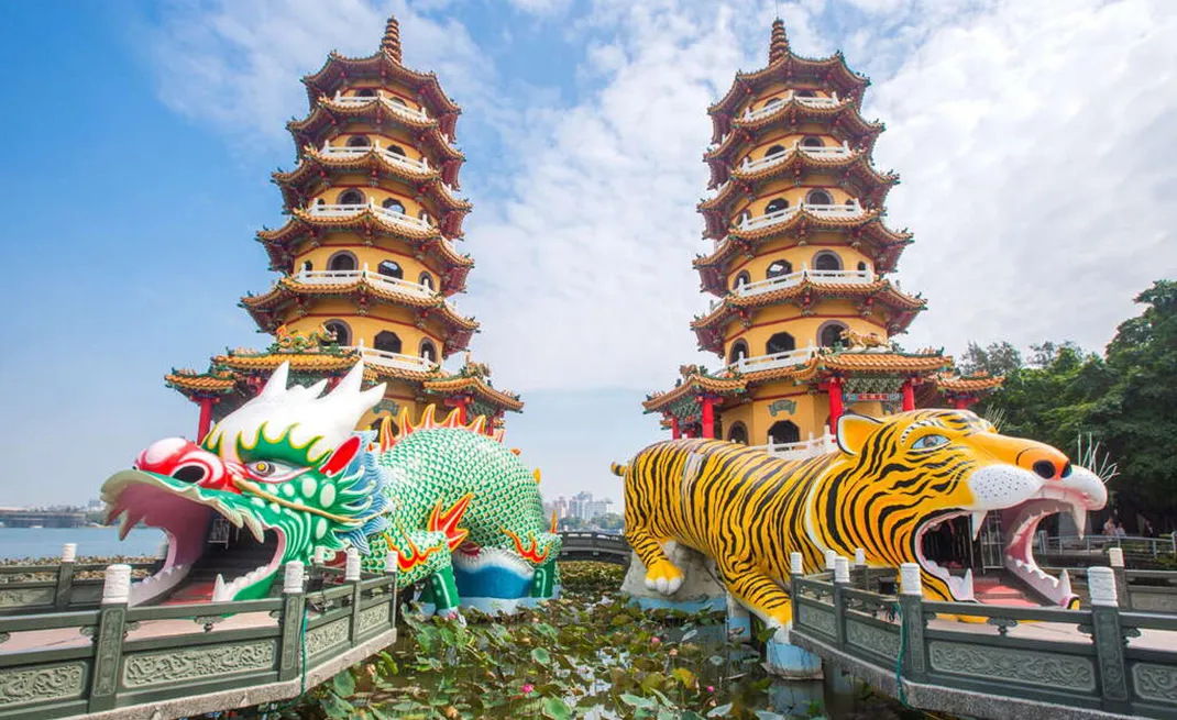 擁有深邃東方寓意的勝境,位於左營區的蓮池潭,南鄰龜山、北倚半屏山,清朝時期因潭中遍植荷花,每逢夏季清香四溢,素有「泮水荷香」美譽,成為清代的鳳山八景之一;蓮池潭畔的指標性建築「龍虎塔」,讓人感受到東方宗教文化的震撼,曾被美國有線電視 CNN 特別推薦,是高雄市最具傳統宗教色彩的風景區之一。