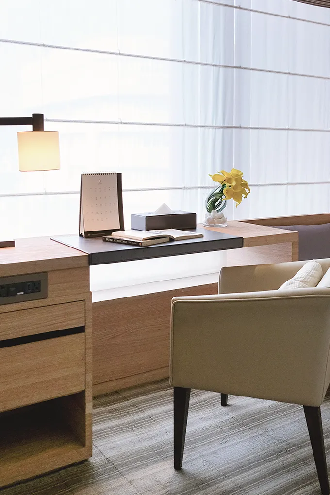 提供旅人一個卸下心防、鬆脫領帶與高跟鞋的自在空間。以適切的溫度,提供具親和力但不叨擾的服務品質。大量原木傢俱、明亮採光及淡淡香氛的設計,營造出溫暖且放鬆的氛圍,讓每位住客都能享受和逸(合意)時光