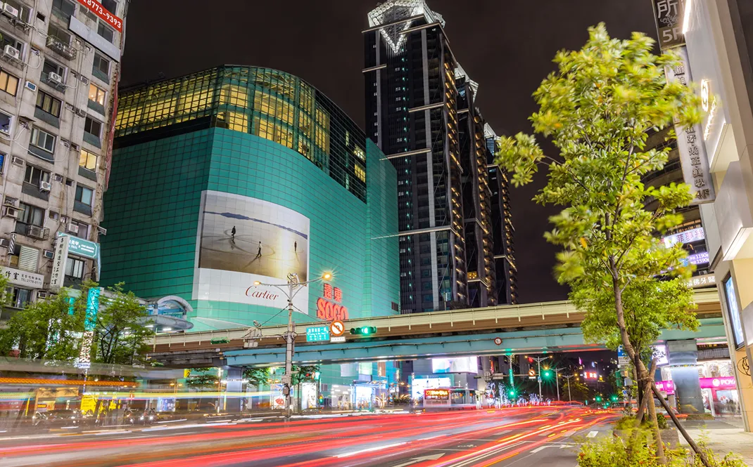 東區商圈是臺北市的時尚與夜生活中心,以「五夜城」概念,提供多元的夜間活動。擁有便捷交通、豐富商店與娛樂設施,這裡融合餐廳、酒吧和精品店,無論白天還是夜晚,都展現出獨特的都市魅力。