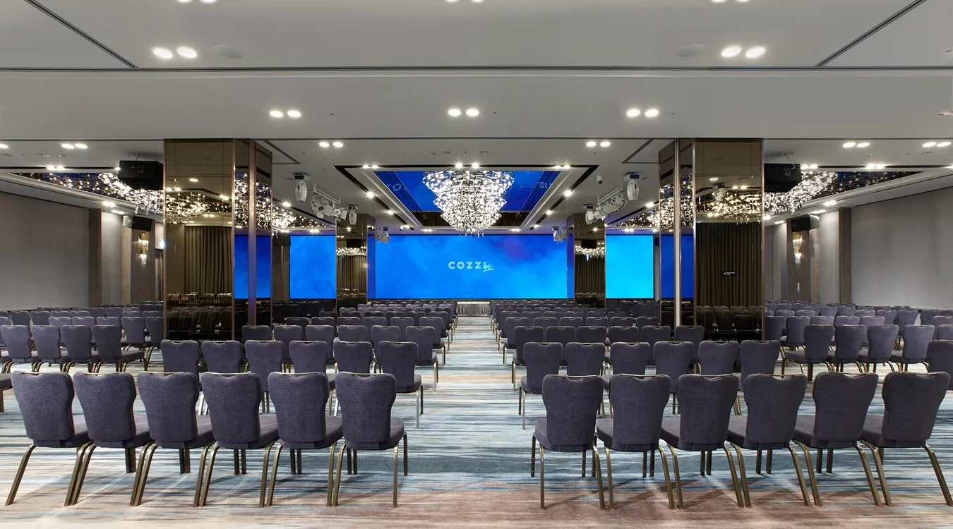 Ocean-themed banquet ballroom for up to 400 guests, ideal for weddings and celebrations. Small Meeting Room (8-90 persons) Large Meeting Room (16 persons) Medium Meeting Room (30-60 persons) Banquet Hall (500 persons)Learn More